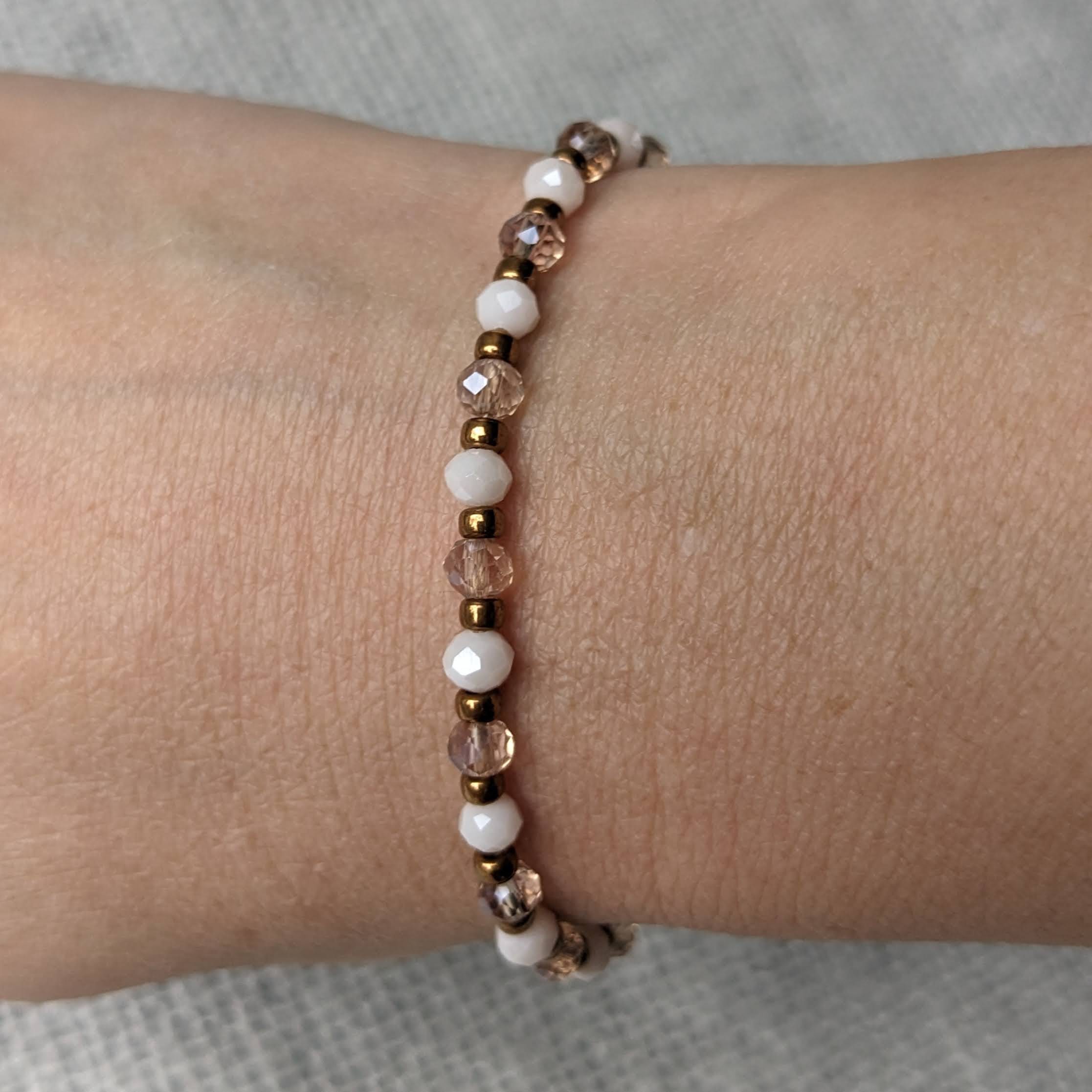 Armband facetkraal parelmoer wit-taupe
