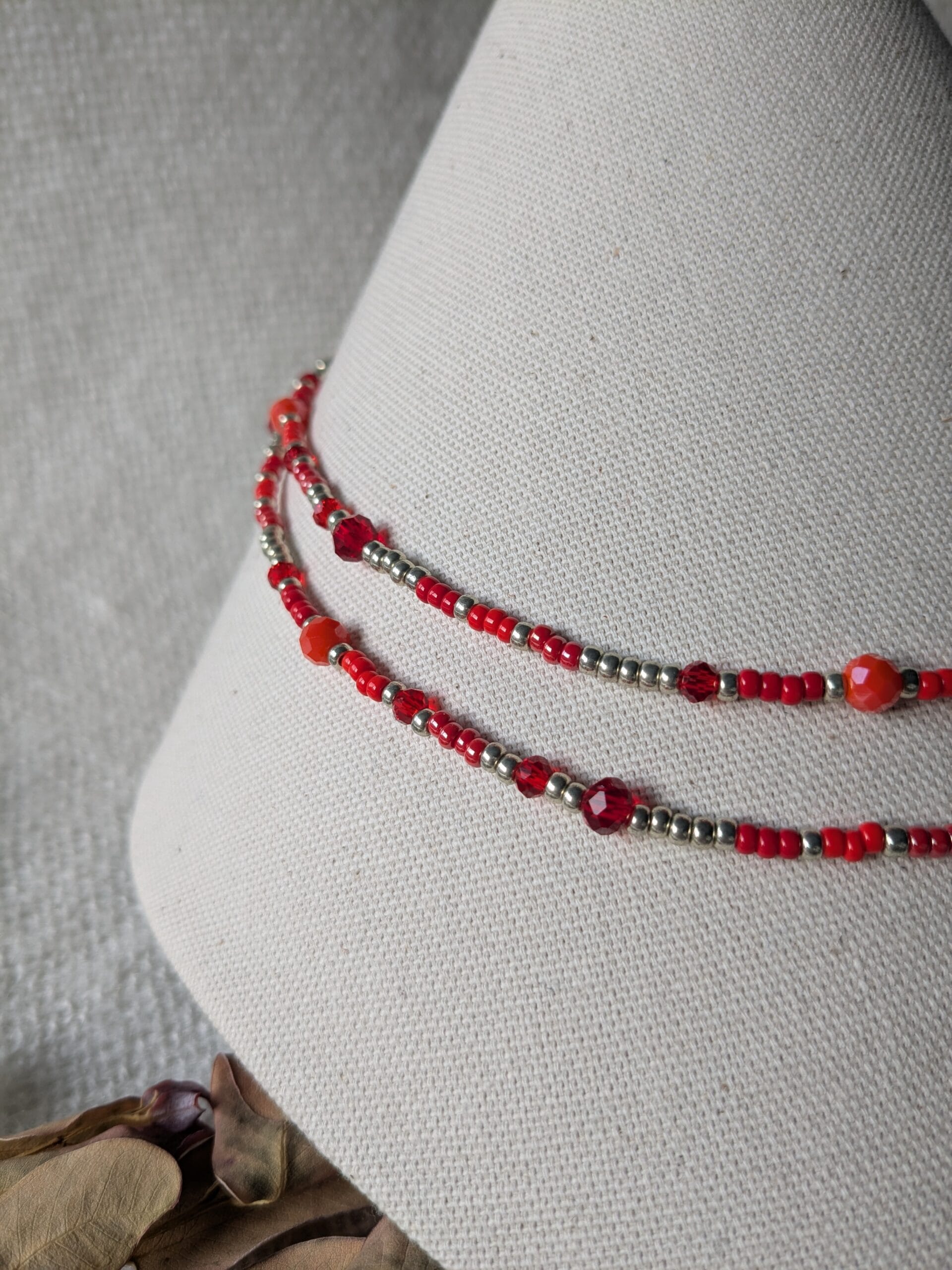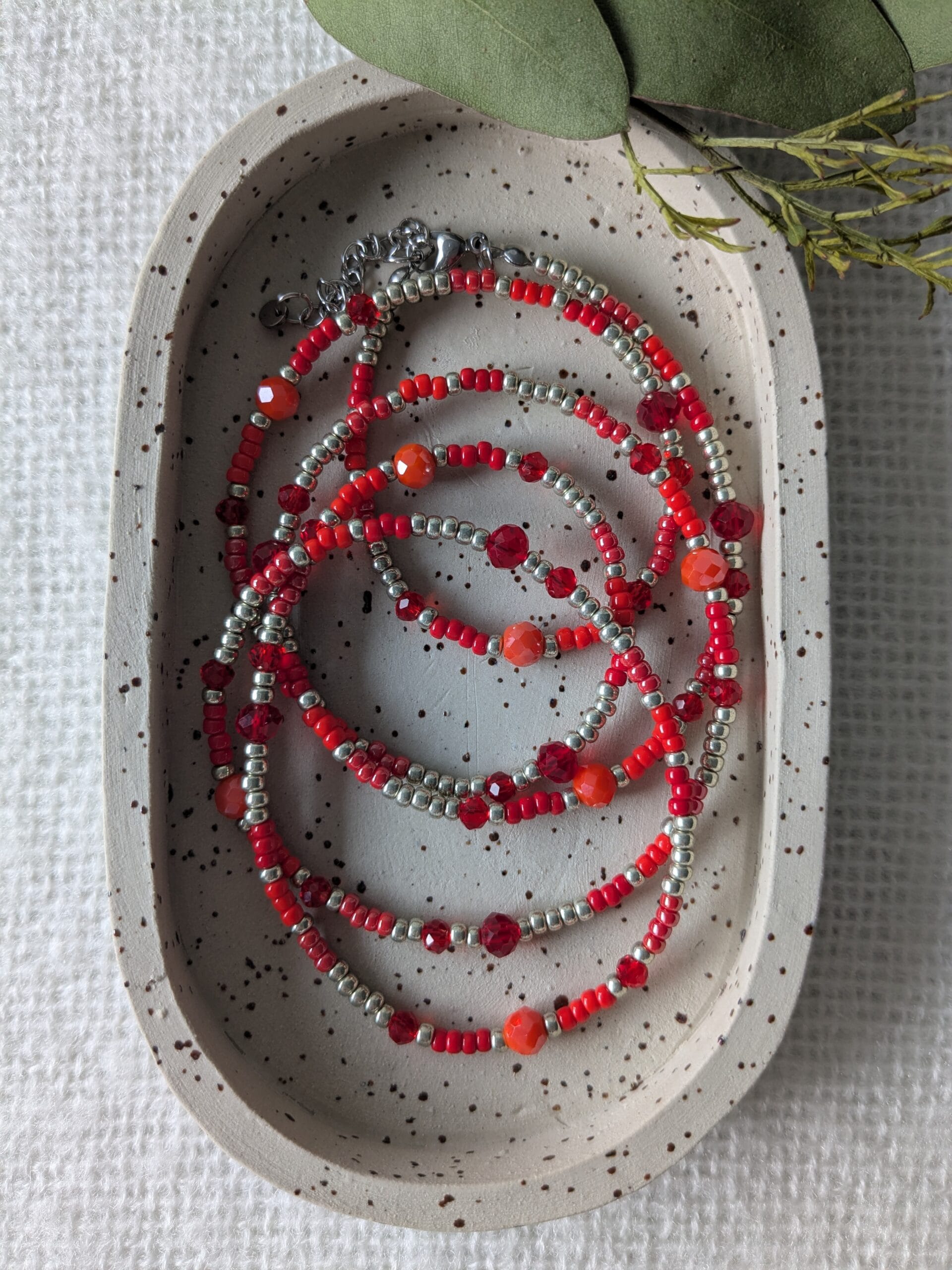 Armband met een twist rood-zilver