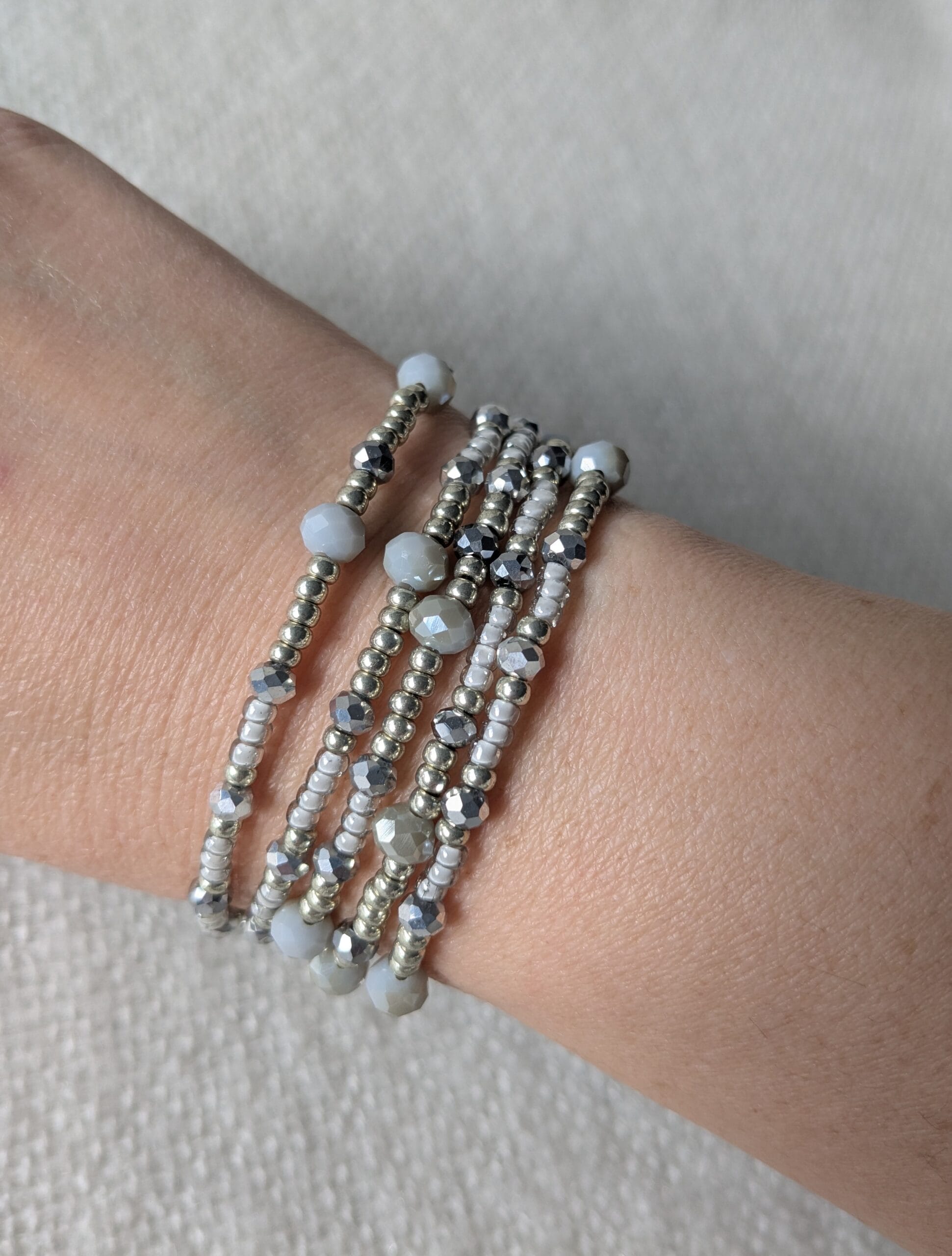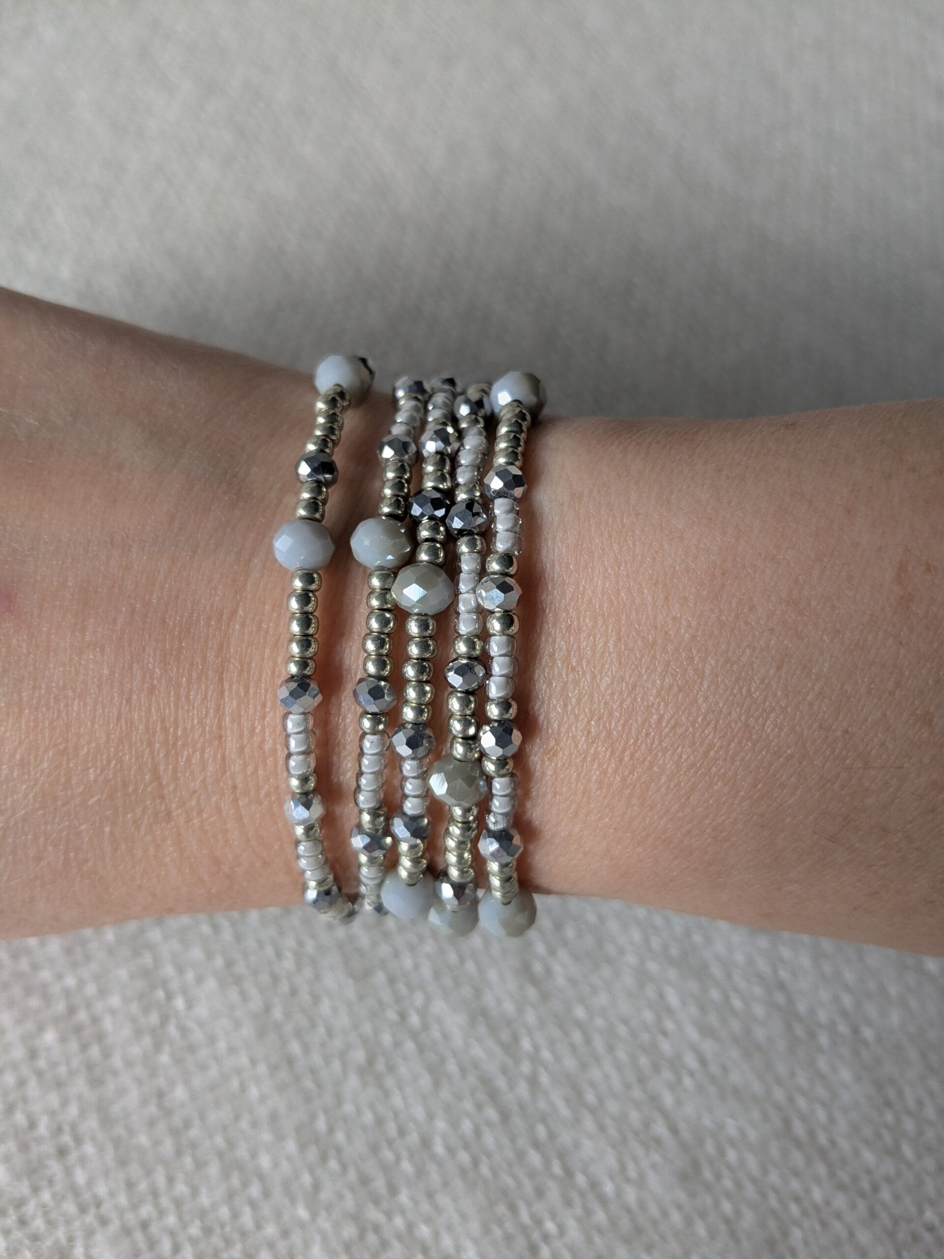 Deze armband bestaat uit 1 geheel, en is lang genoeg dat hij 5 keer om de pols kan.