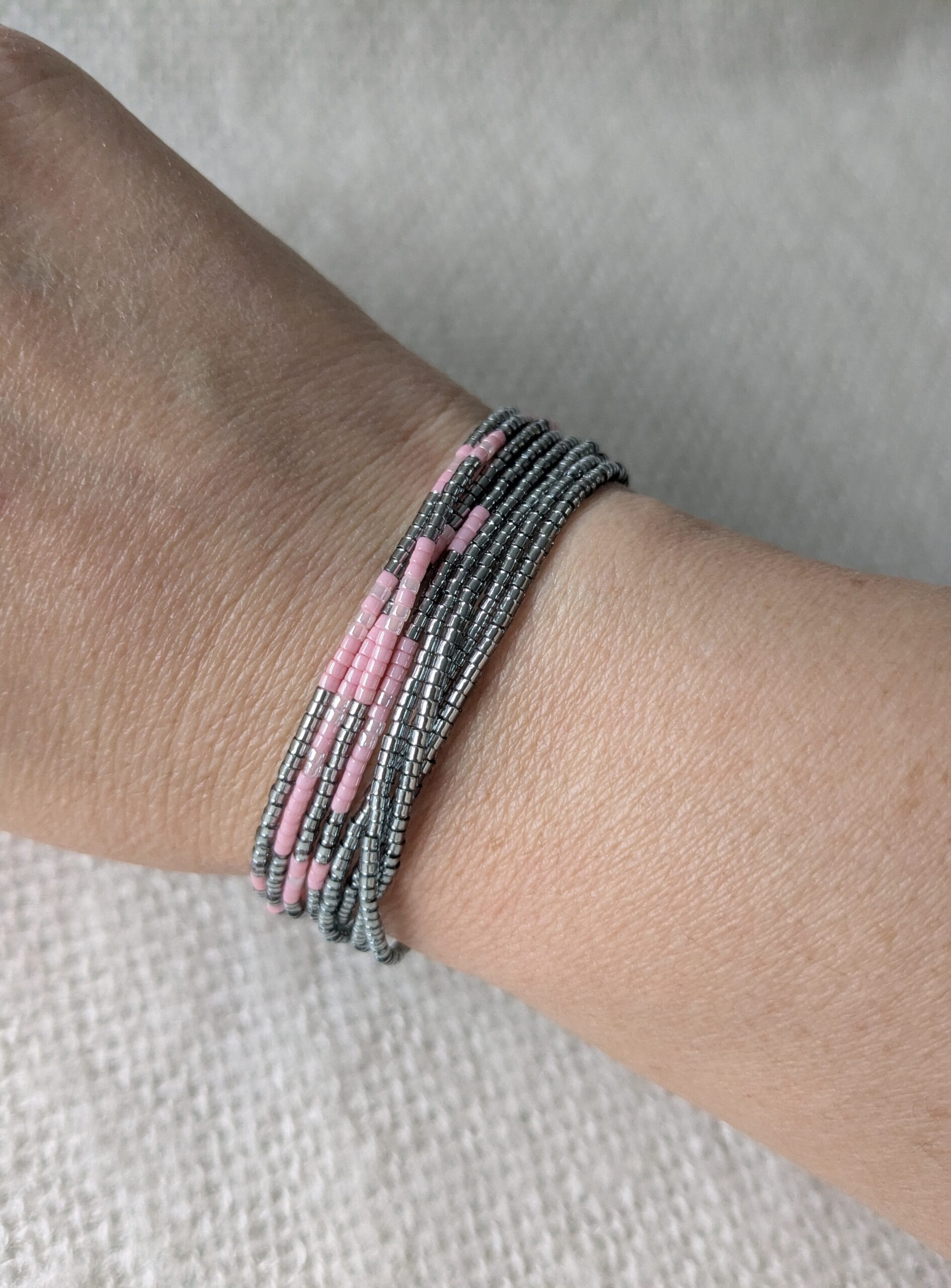 Door het fijne draad en de kleine kraaltjes krijgt de armband een zachte en chique uitstraling.
