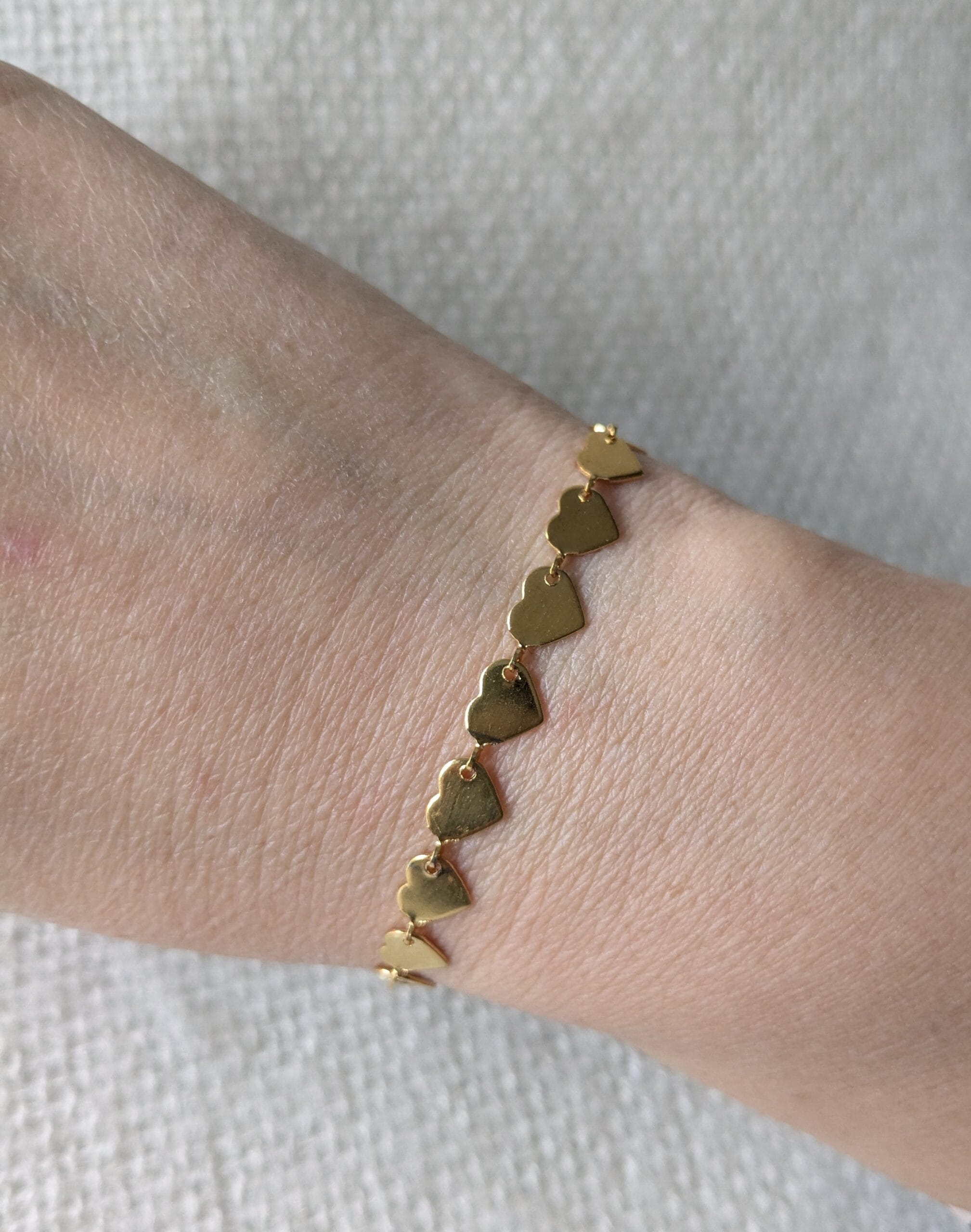 Te leuk zijn deze hartjes armbanden, doordat de hartjes los aan elkaar geschakeld zijn is het een soepele armband om te dragen.