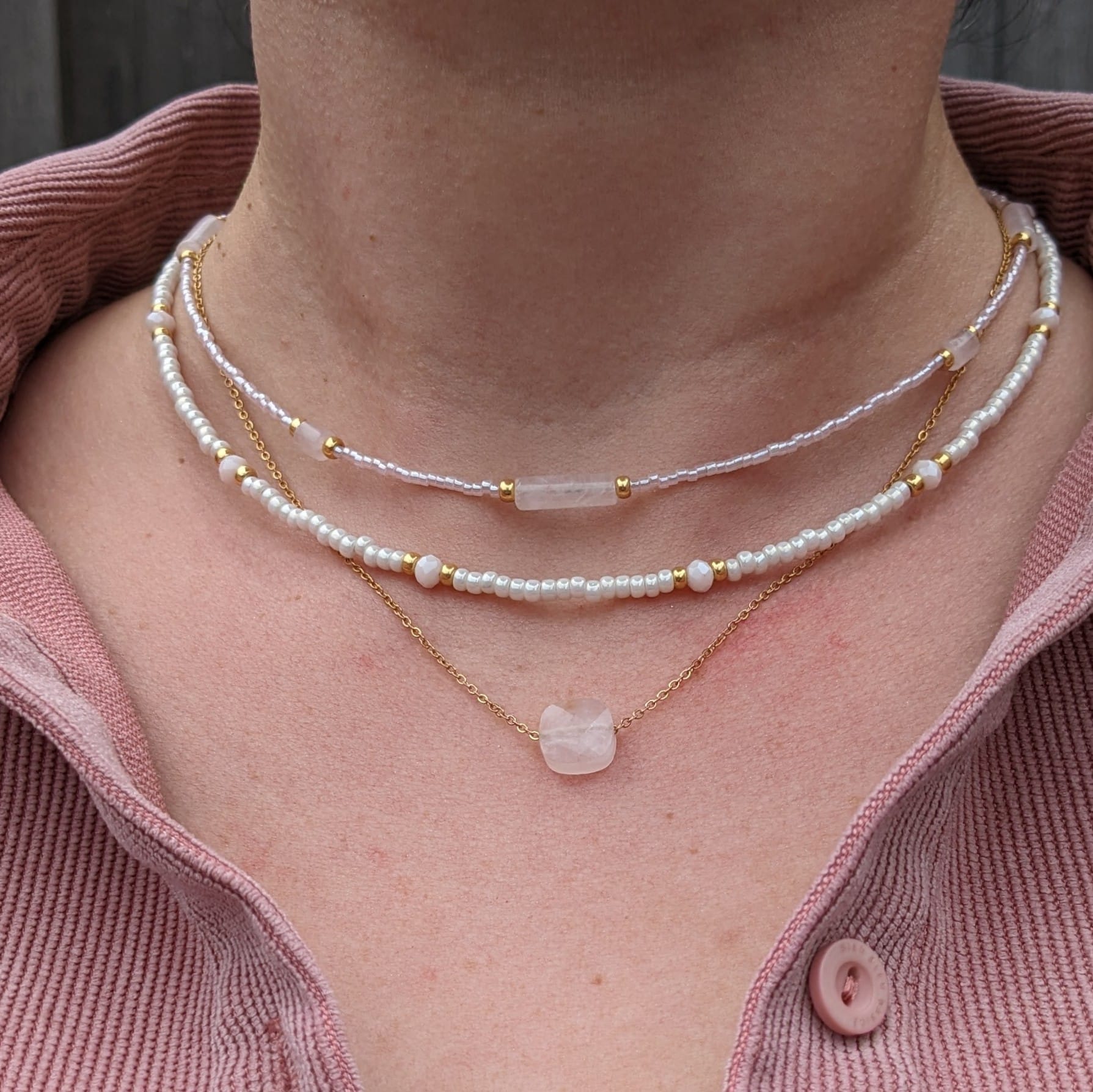 Hou je van afwisseling dan is deze set uit te breiden met de ketting pioenroos wit.