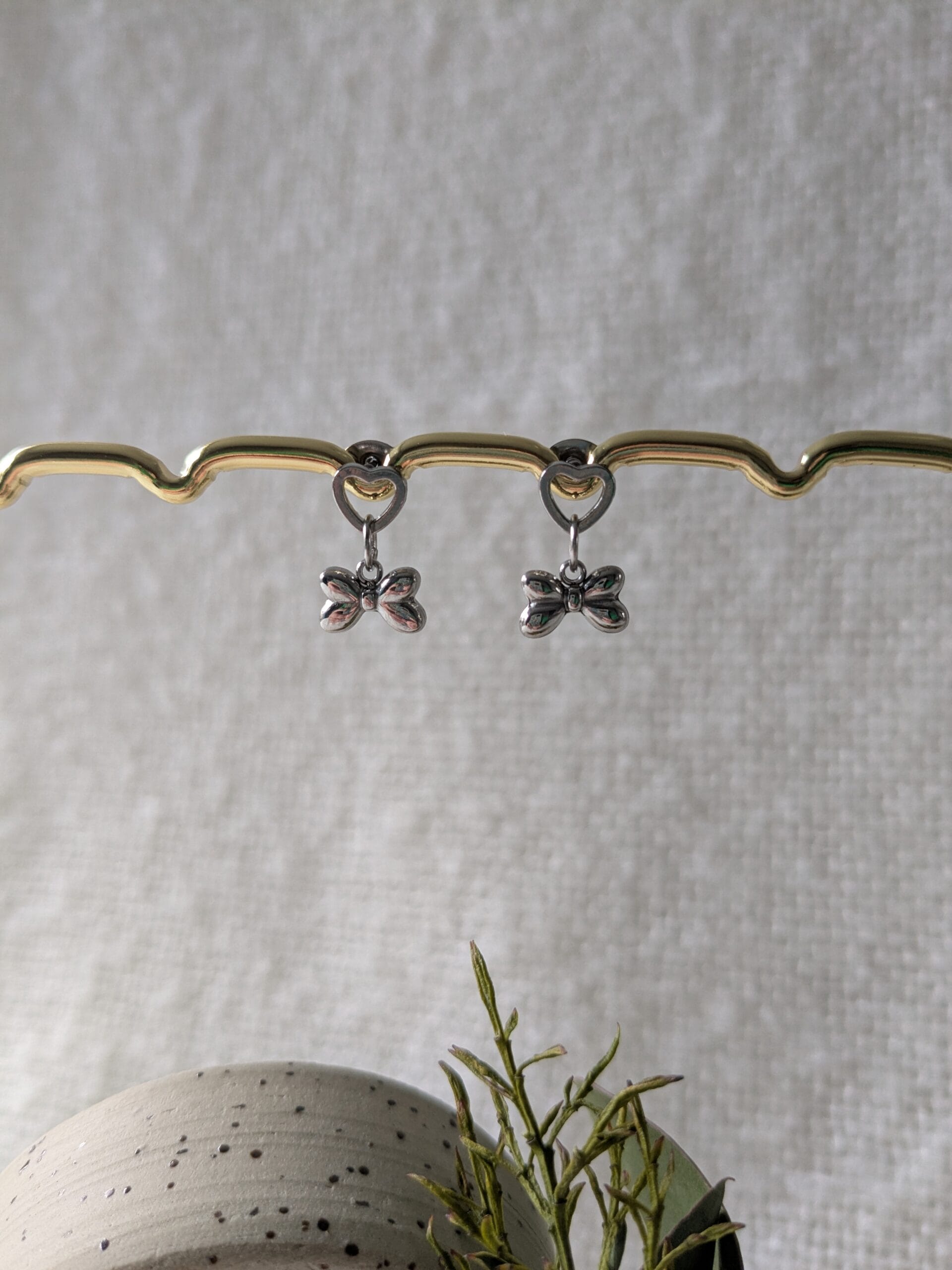 Oorbellen hart met strikje (zilver)