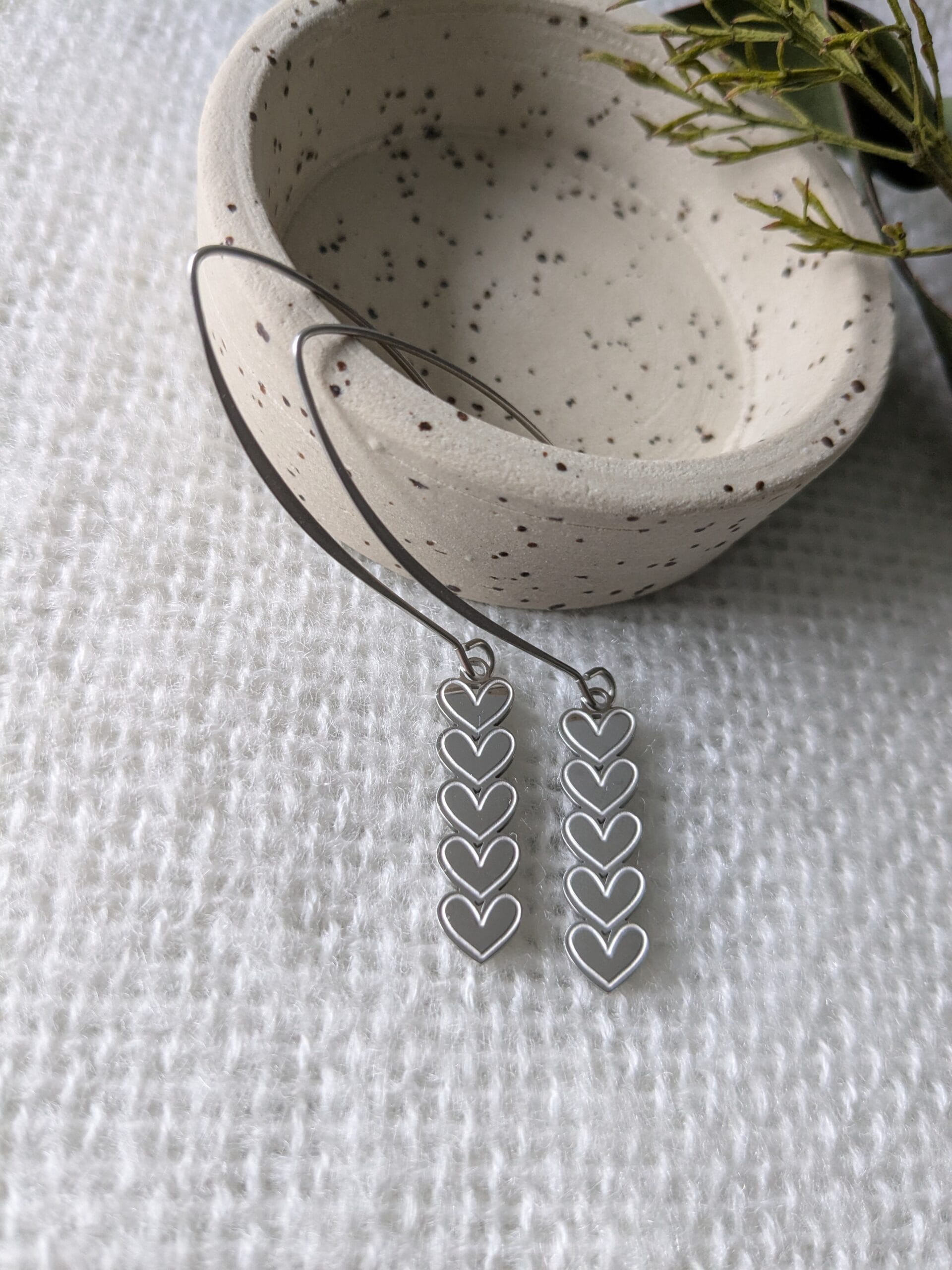 Oorhanger ‘maak me stapelgek’ hartjes (zilver)