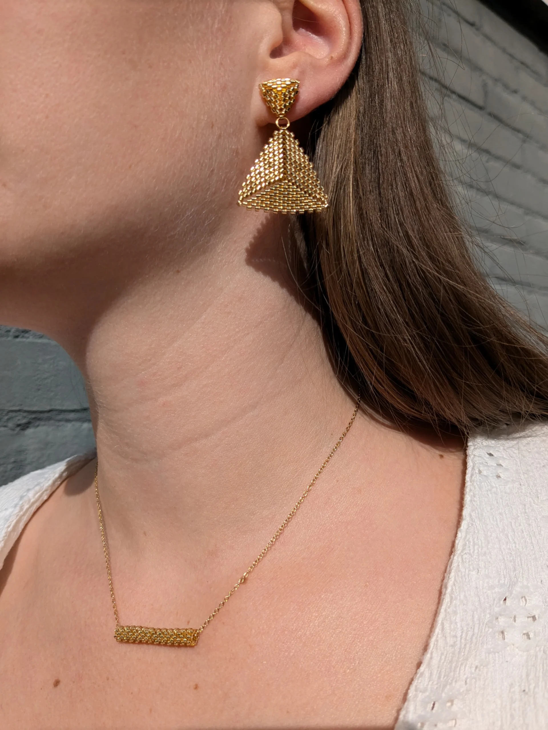 Deze prachtige oorbellen zijn uniek in zijn soort, handgemaakt met liefde en passie. Door de vorm en de gouden kleur van deze oorbellen zijn het echte statement oorbellen en tegelijkertijd met een klassieke uitstraling. Met het oog op de feestdagen zijn deze oorbellen een prachtig sieraad om, zeker dan ook te schitteren.