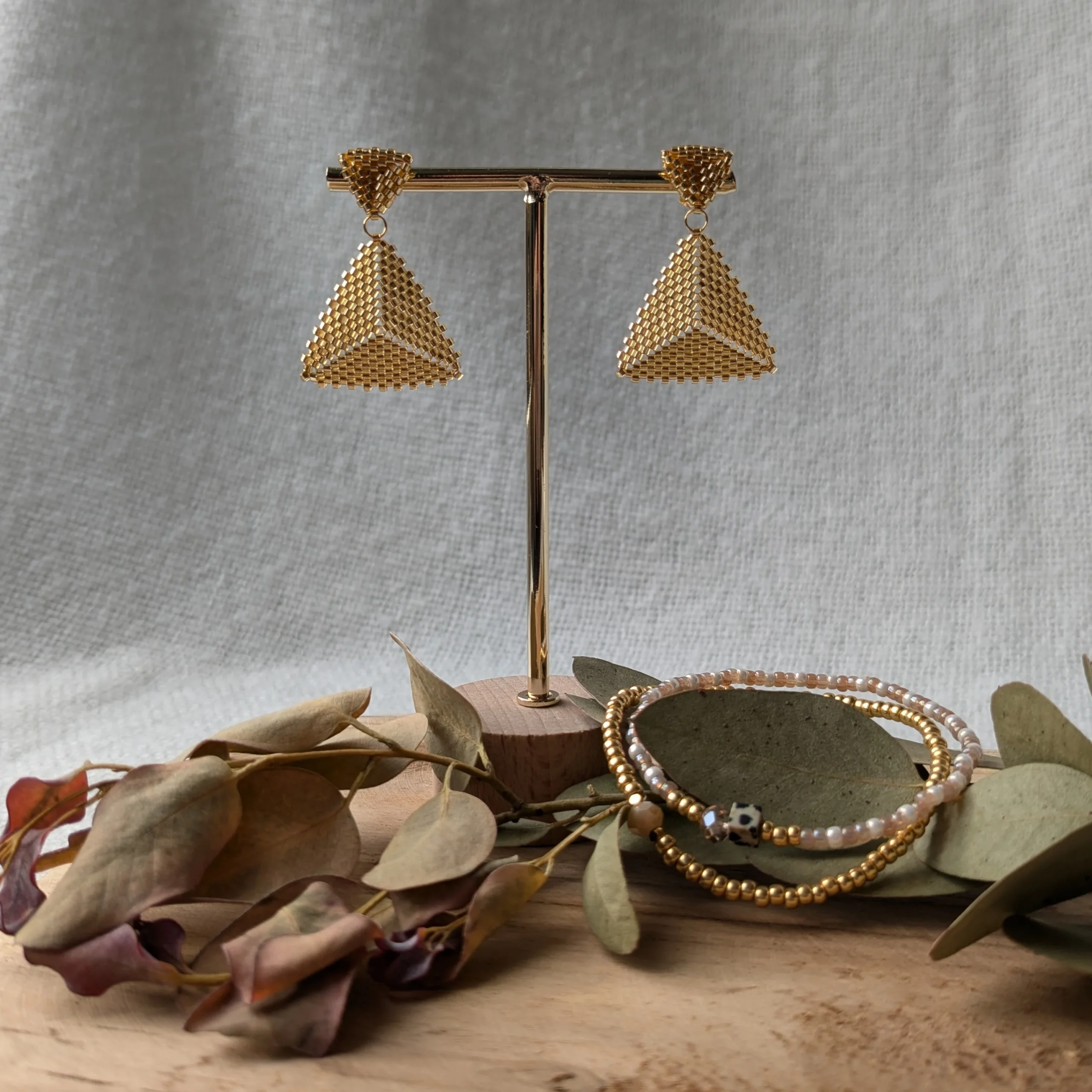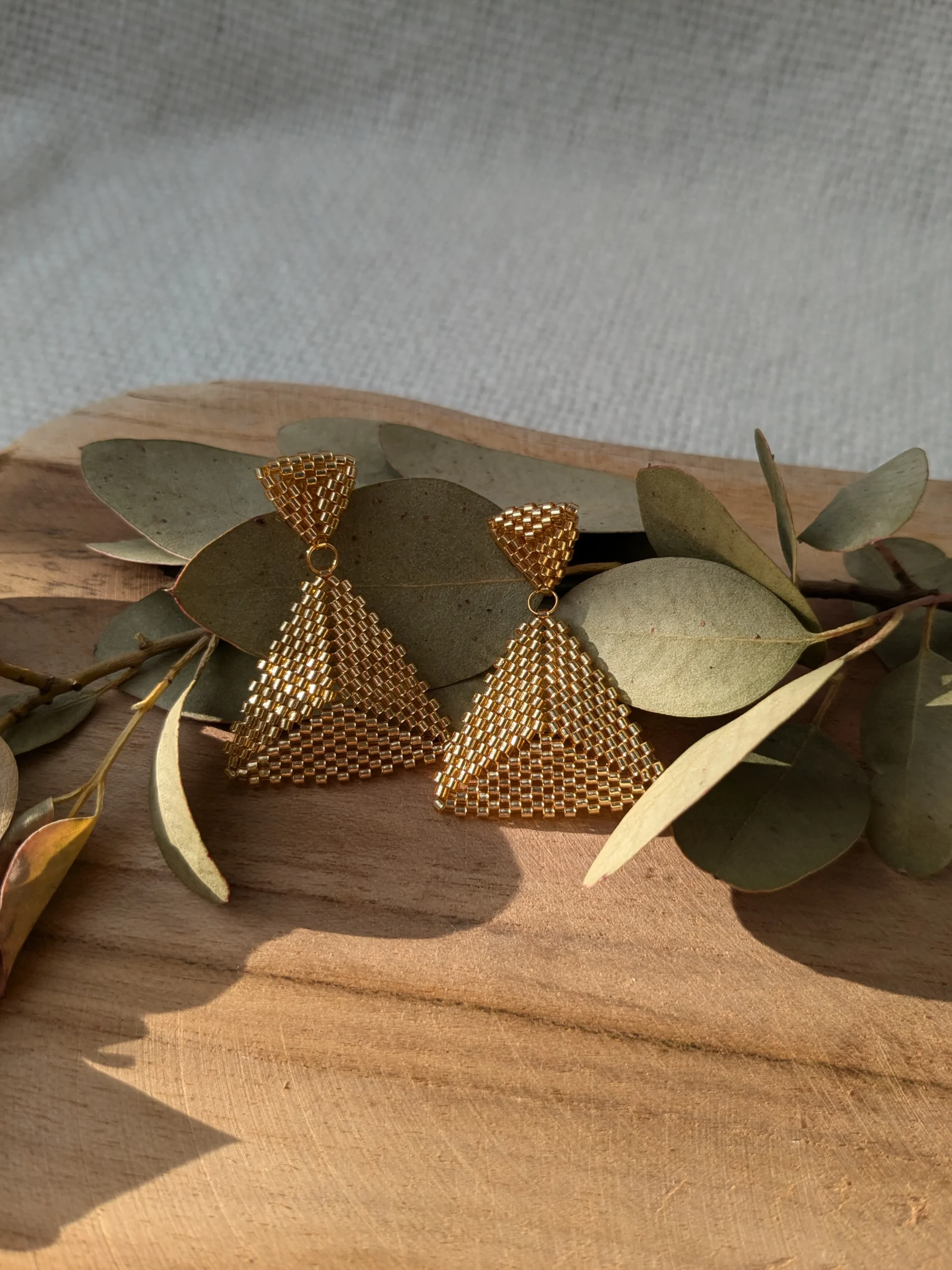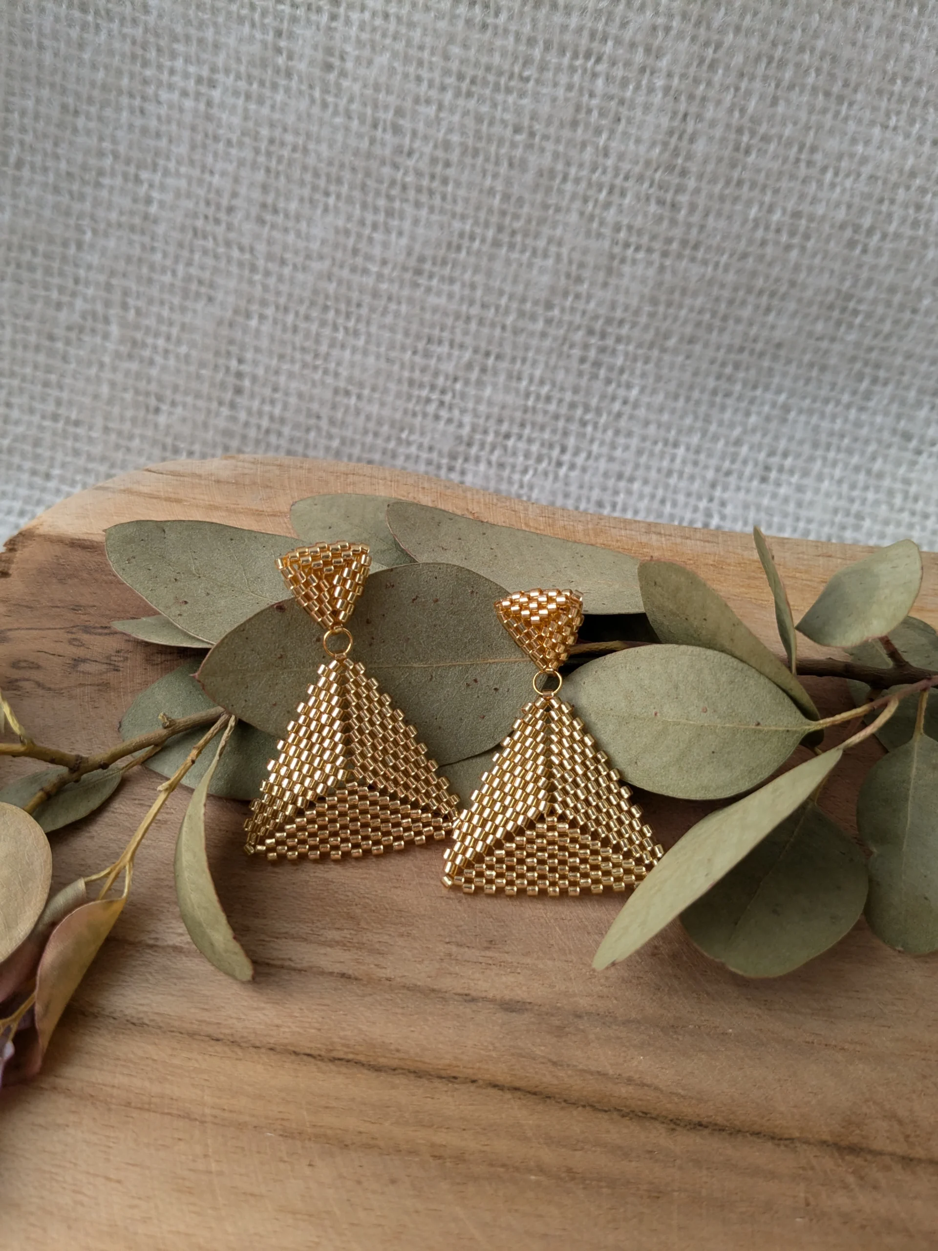 * de oorsteker is van rvs goud en afgewerkt met een geweven knopje van miyuki glaskralen