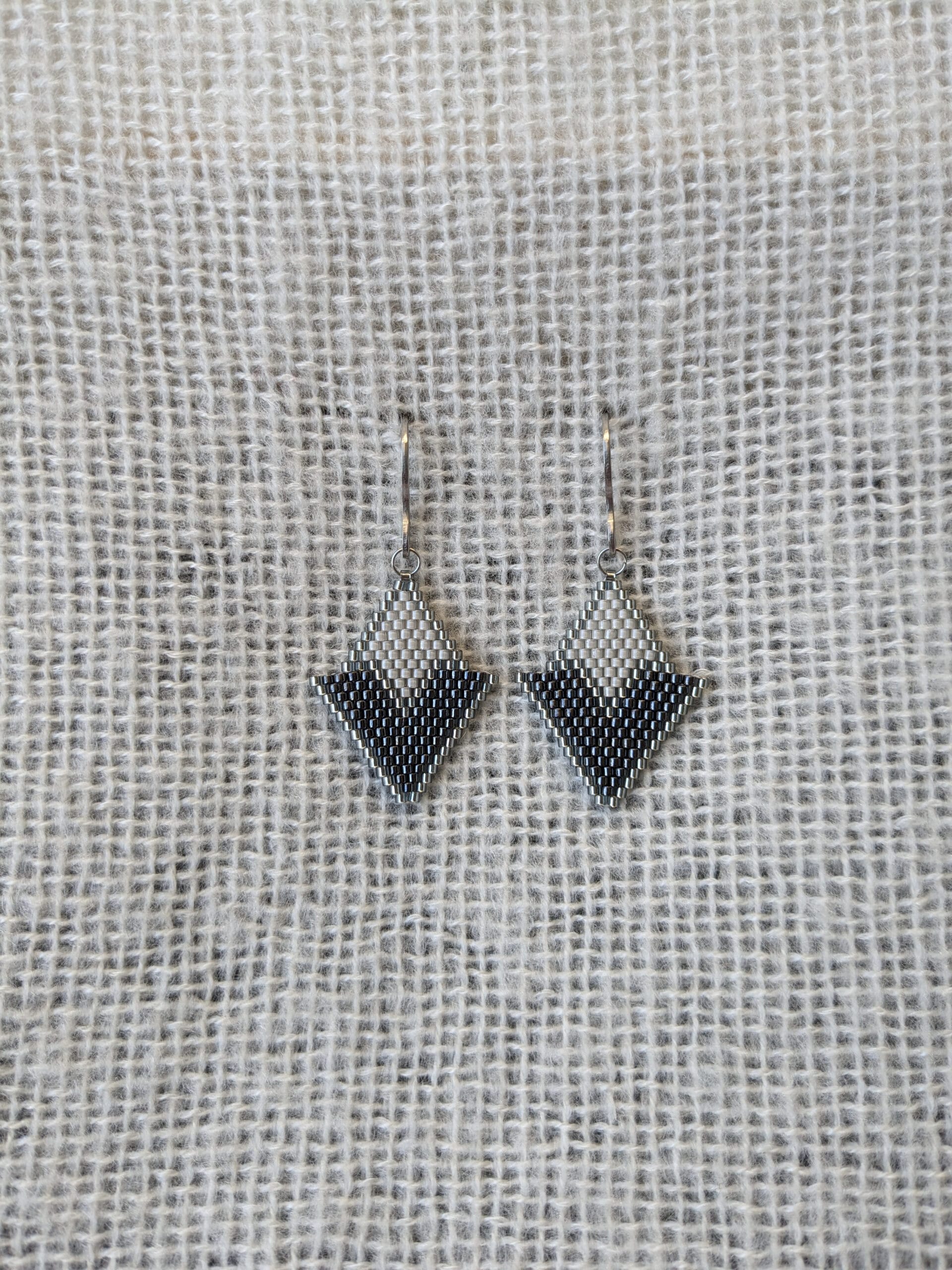 Mooie handgeweven oorbellen gemaakt met de brick stitch techniek. Hierdoor zijn ze uniek in hun soort en mogen ze zeker gezien worden. Deze oorbellen zijn afgewerkt met een luxere variant oorhanger. Ze zijn licht van gewicht, dus fijn om te dragen.
