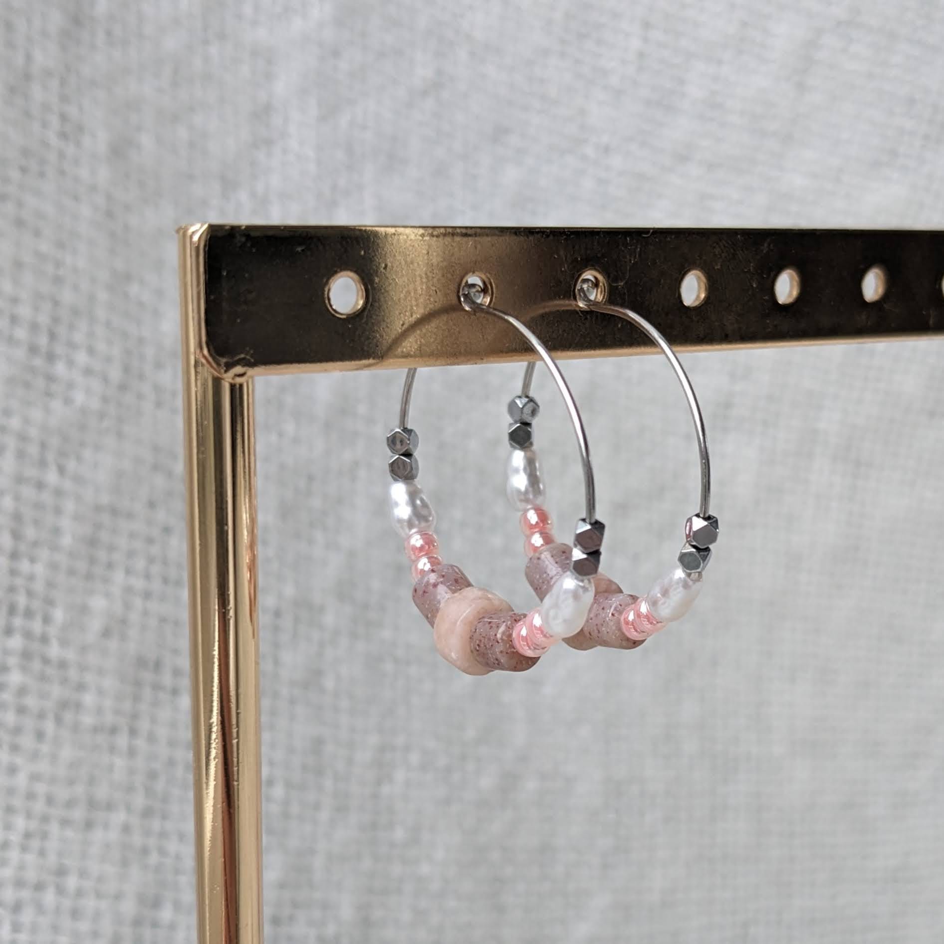 Leuke oorringen die makkelijk combineren bij je kleding. Zijn licht van gewicht, dus fijn om te dragen. Materiaal: * natuursteen roze chalcedoon * glasparel * de oorring is van rvs zilver