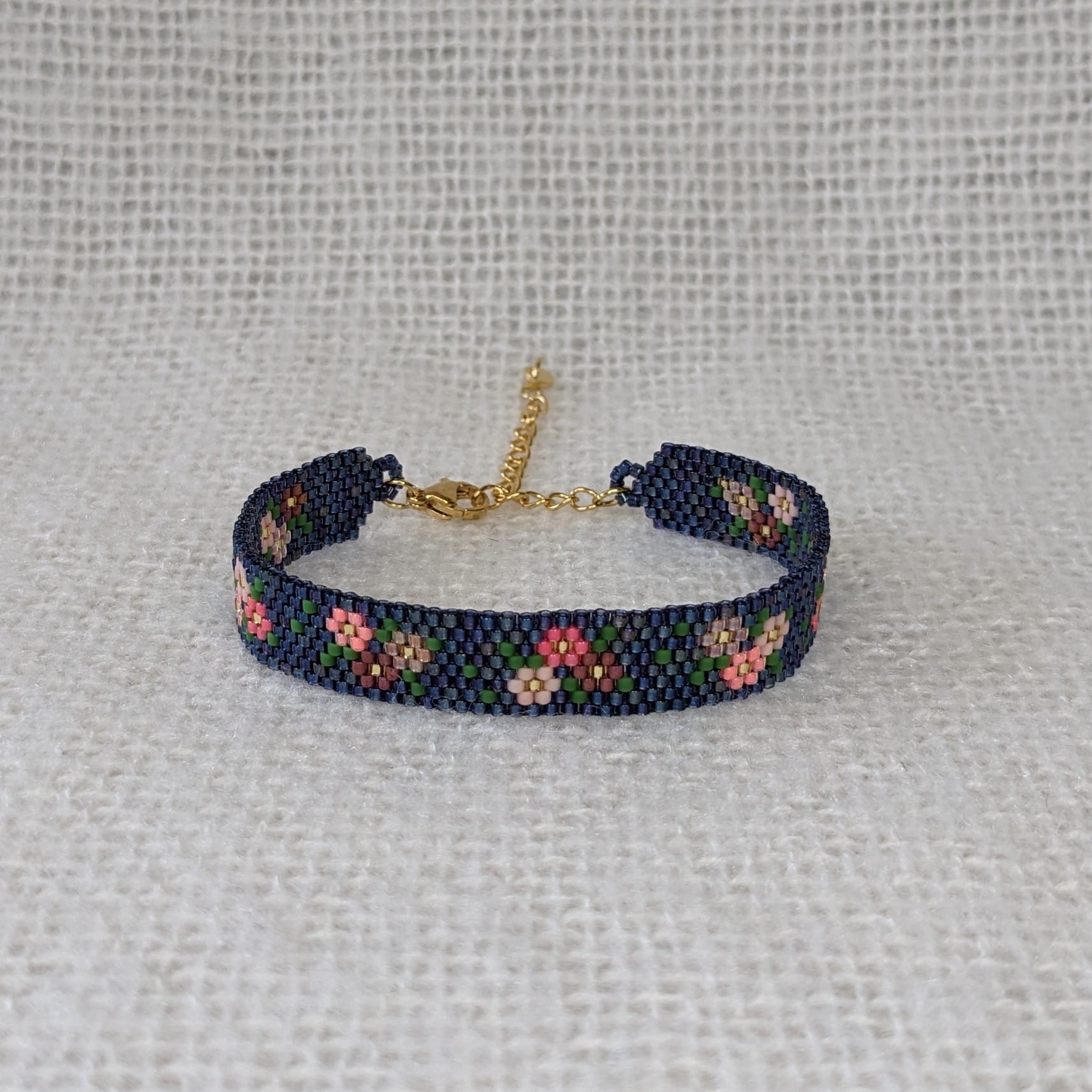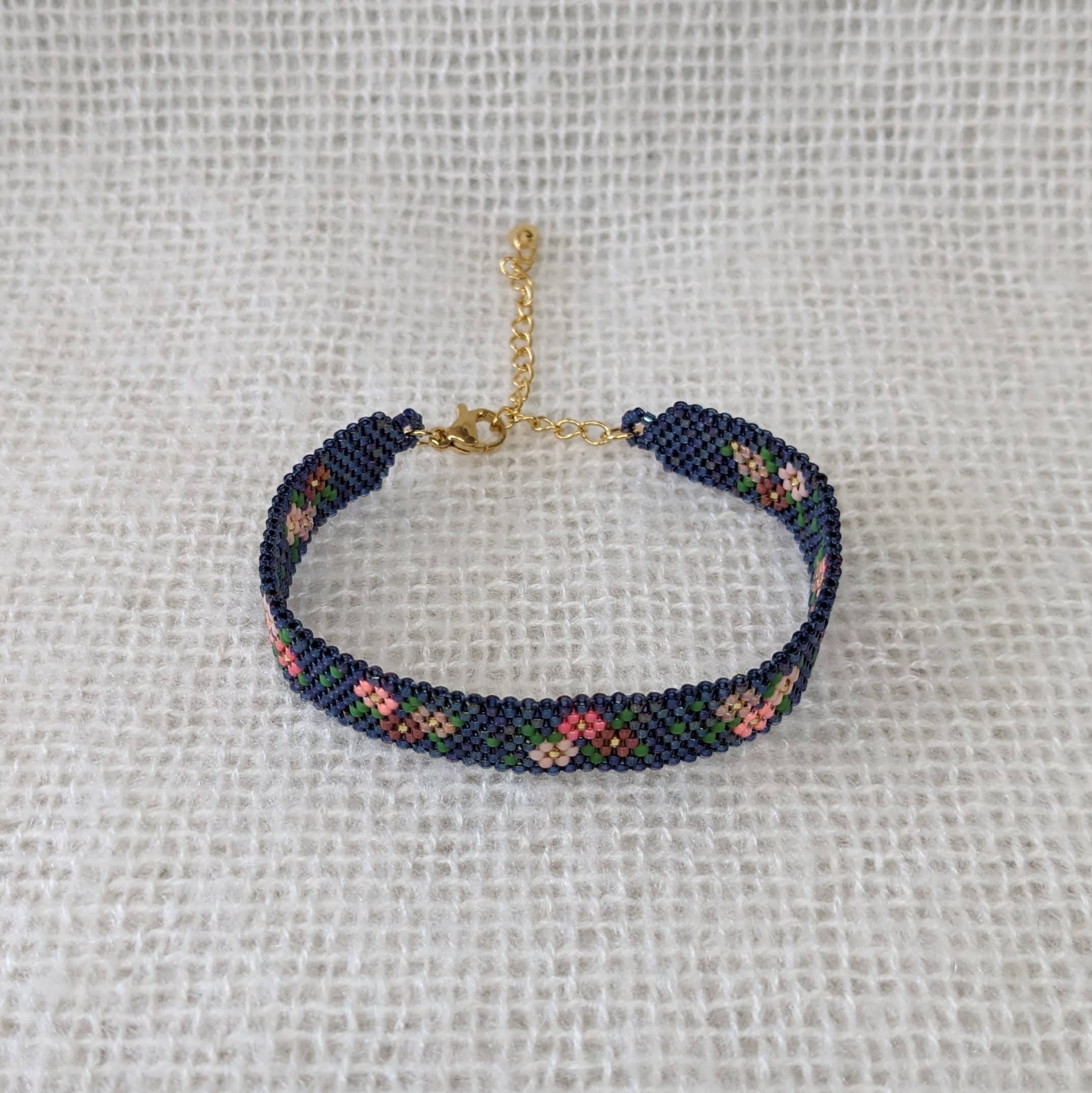Weef armband bloem veelkleurig blauw (goud)