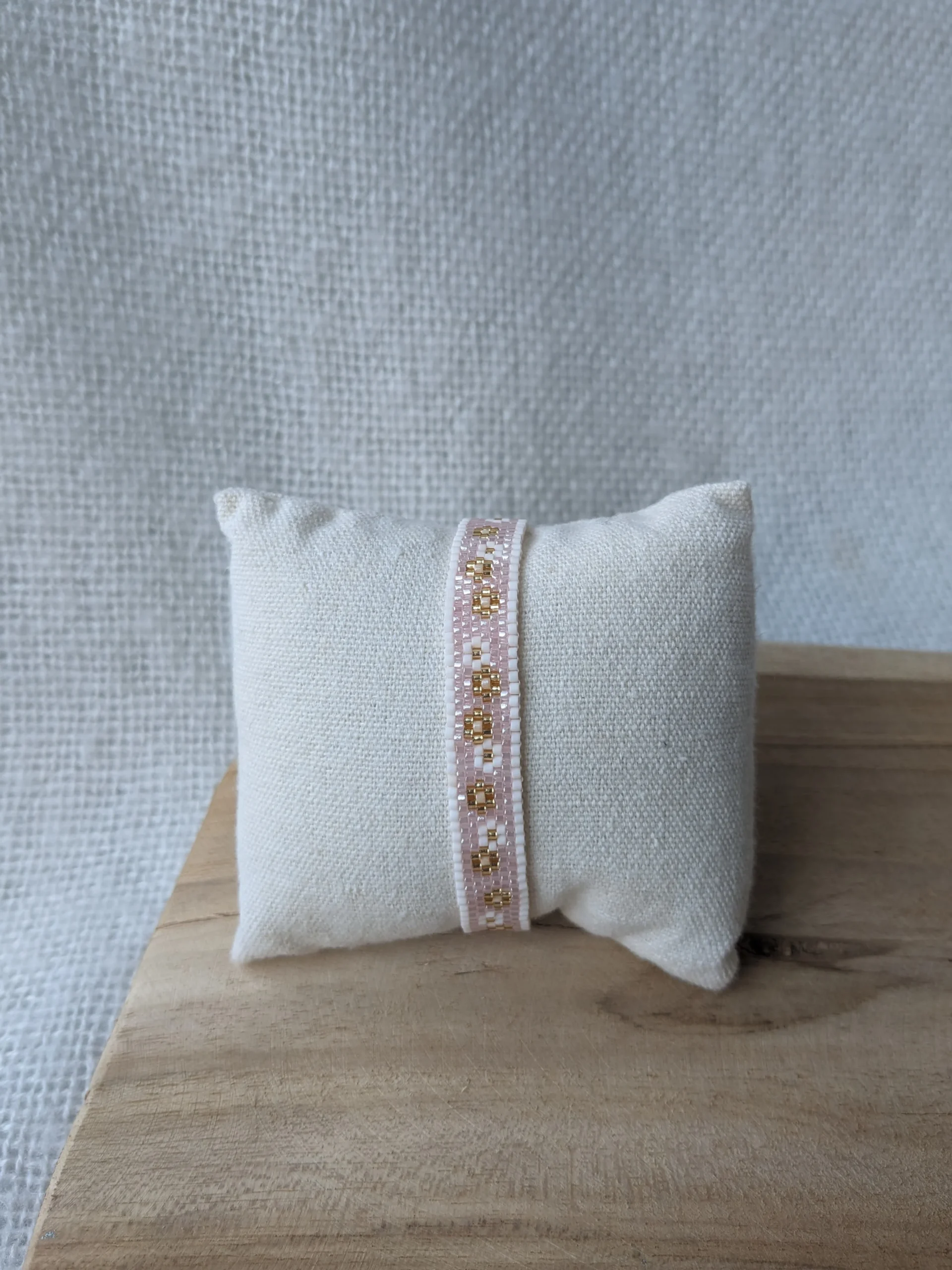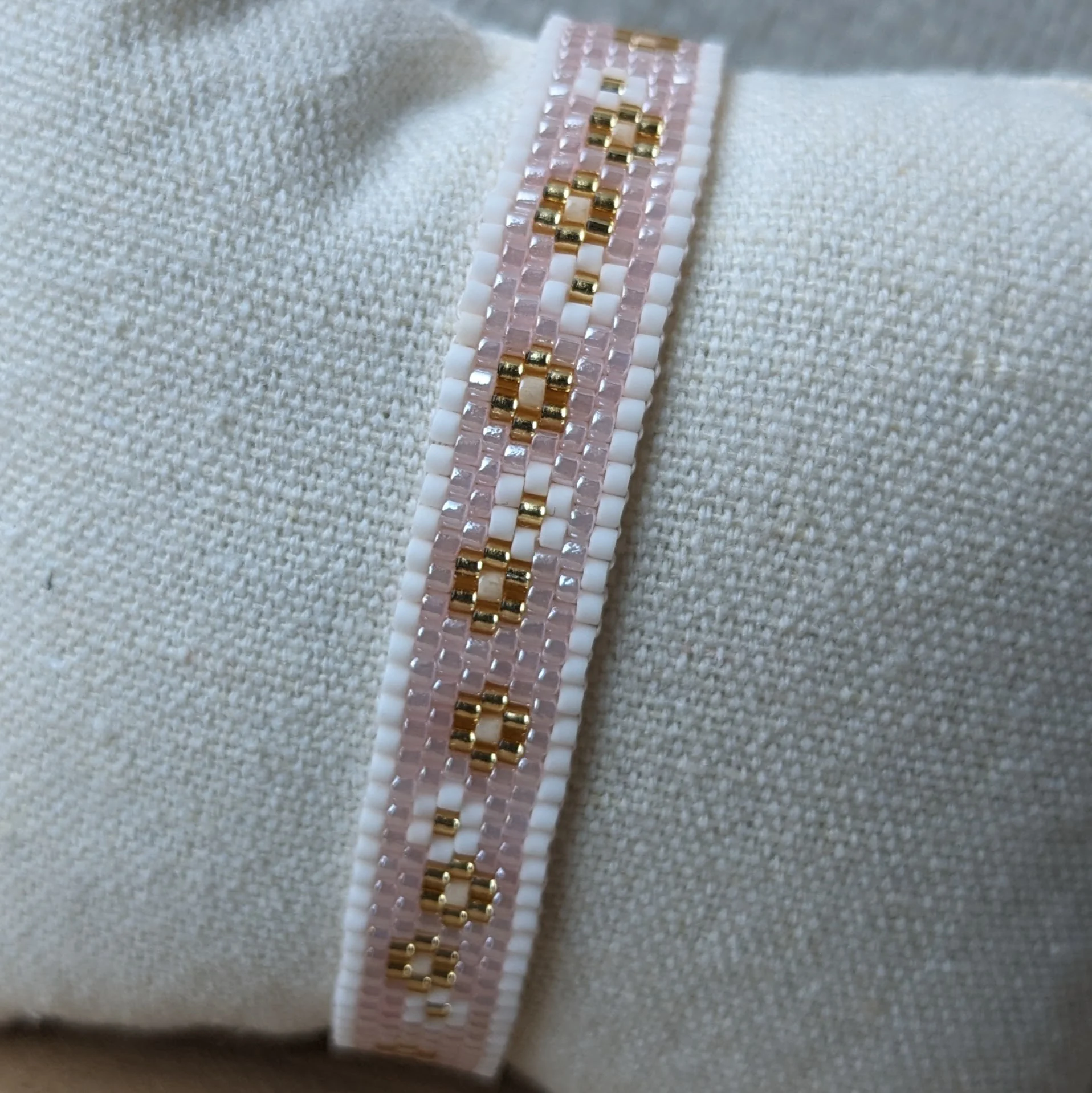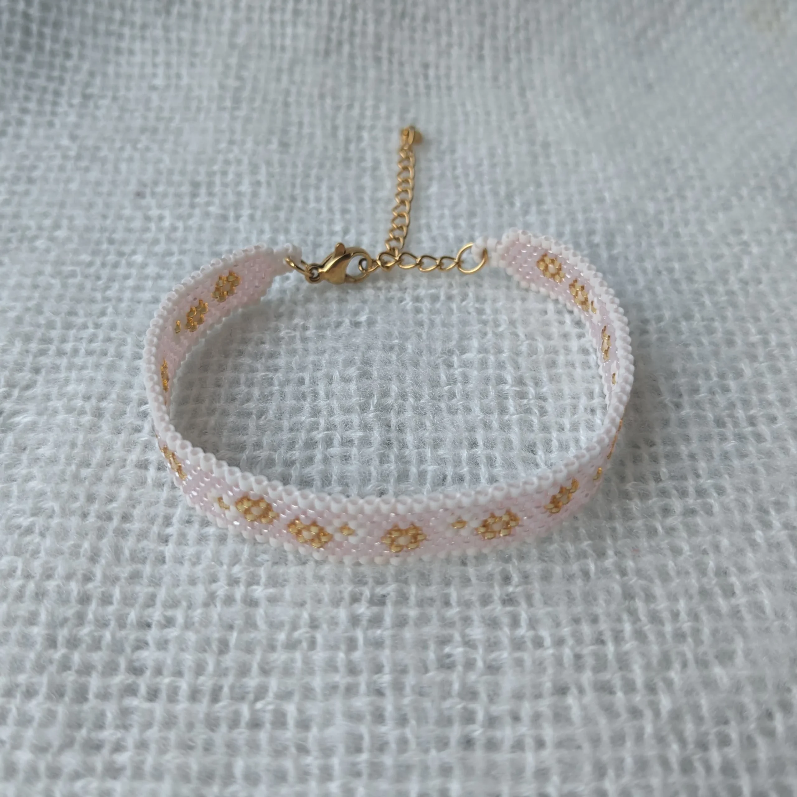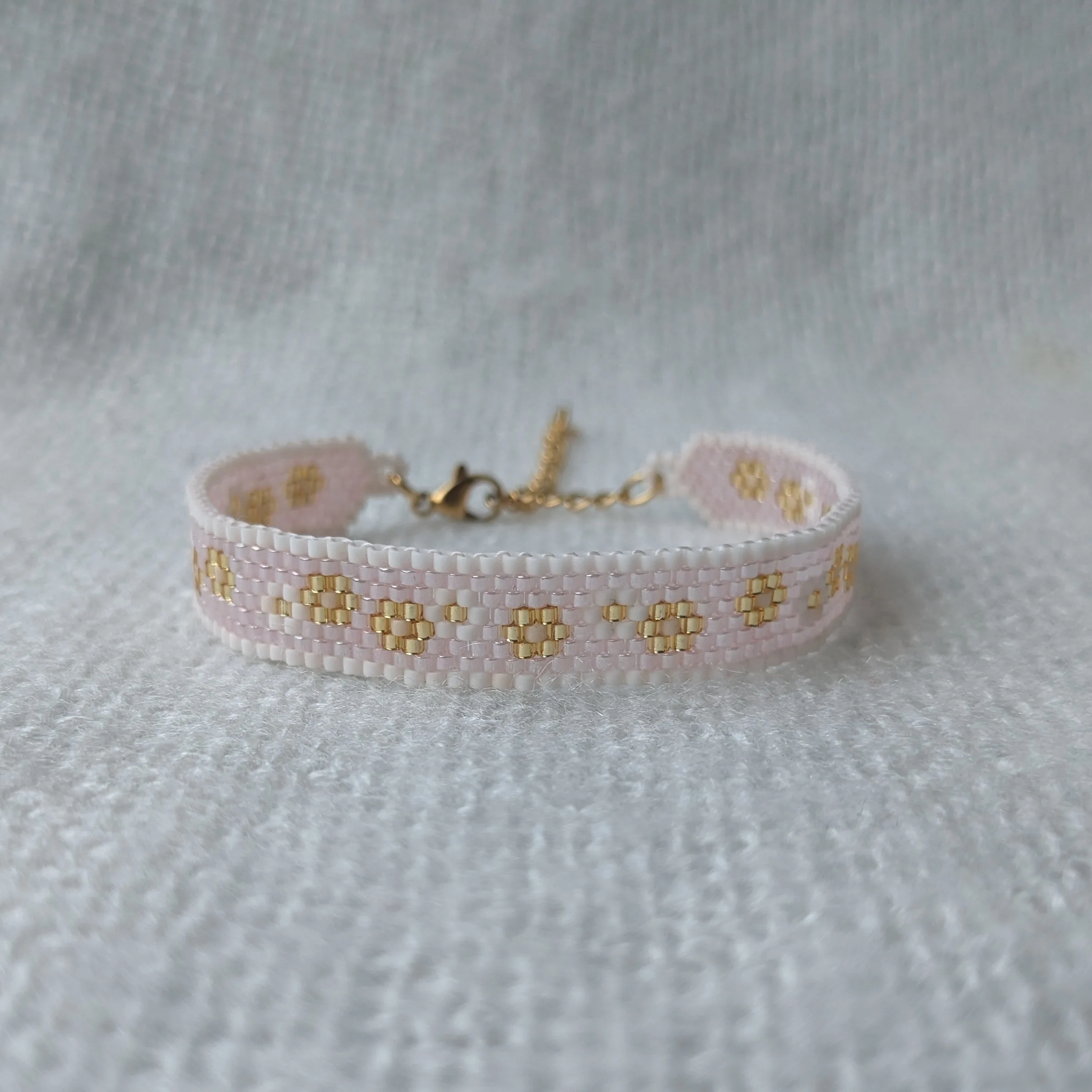 Weef armband bloemig poeder-roze (goud)