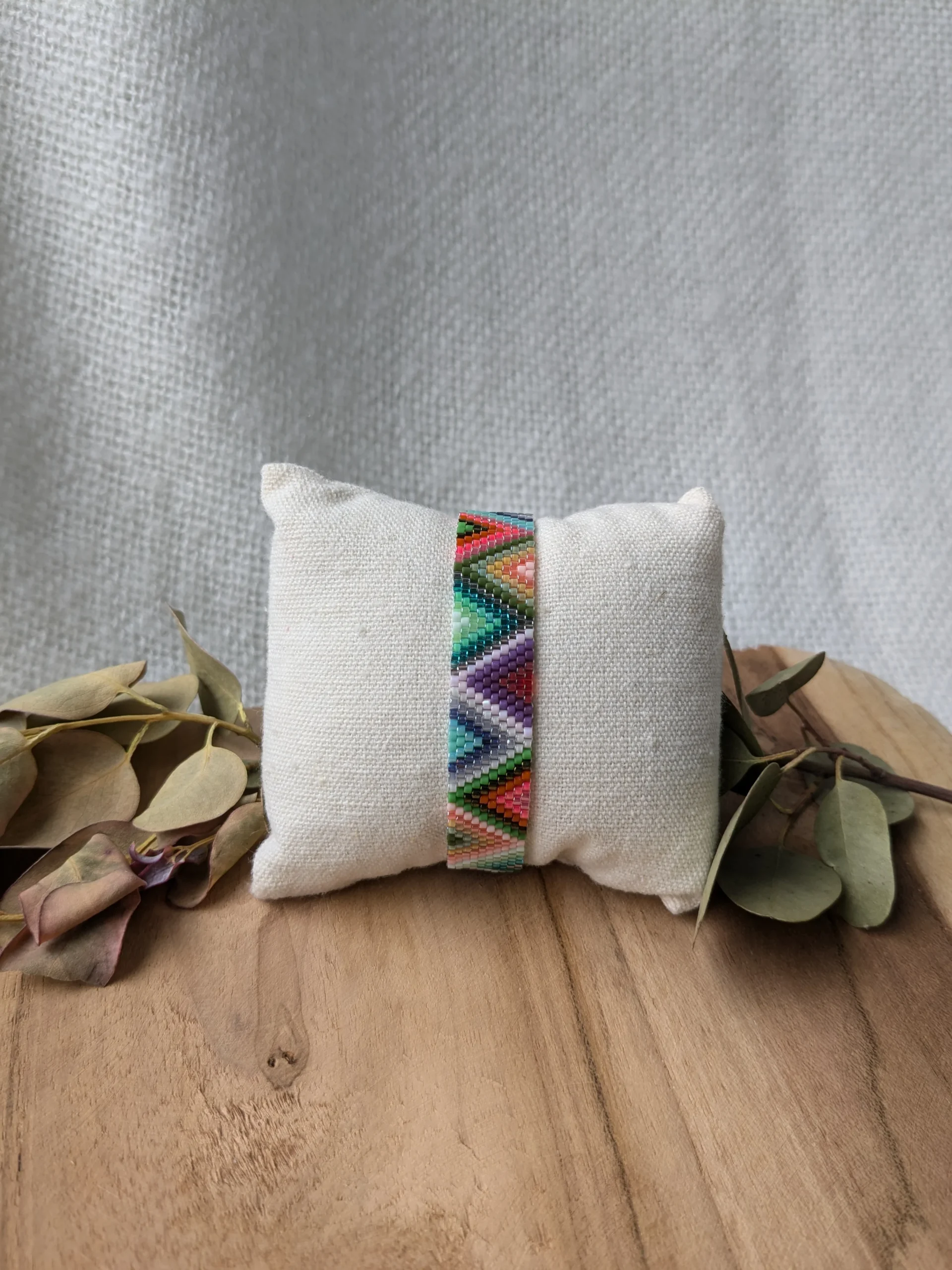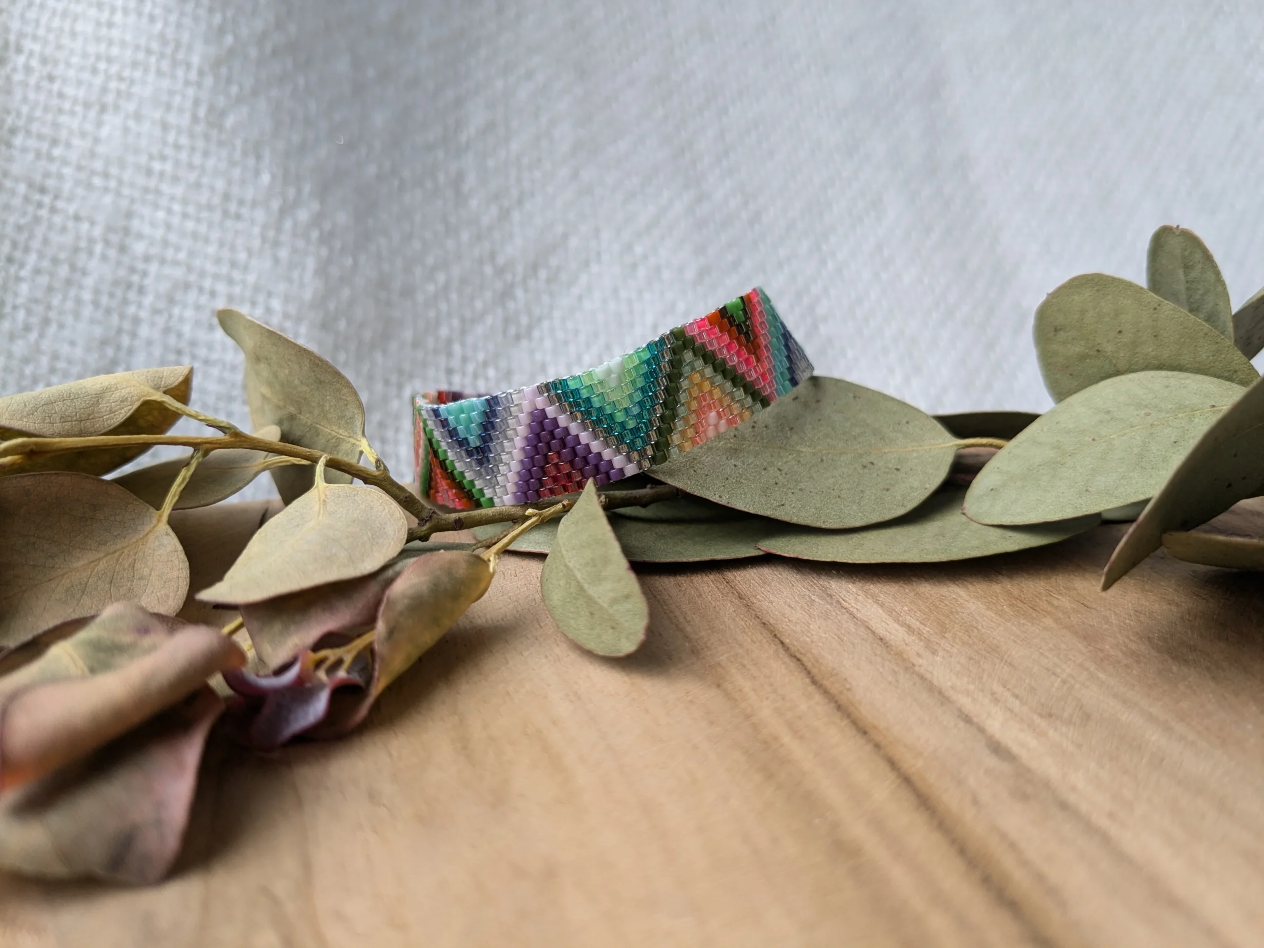 Deze mooie handgeweven armband, is uniek in zijn soort. Gemaakt met liefde en passie. Het fijne aan deze armband is dat hij soepel valt en licht van gewicht is, waardoor de armband fijn draagt.